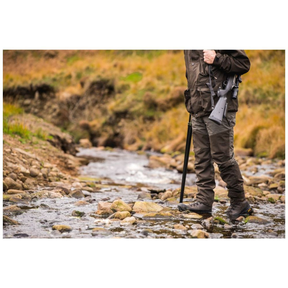 Pantalonii Ashcombe sunt fabricați din material Nyco, dotat cu membrană TPU care permite o bună circulație a aerului și face pantalonii impermeabili. Pantalonii Ashcombe dispun de patru buzunare diferite pe părțile laterale și pe spate, talie înălțată și bandă de prindere. Culoarea elegantă maro-oliv îi face ușor de asortat cu orice alt articol din gama Ashcombe.