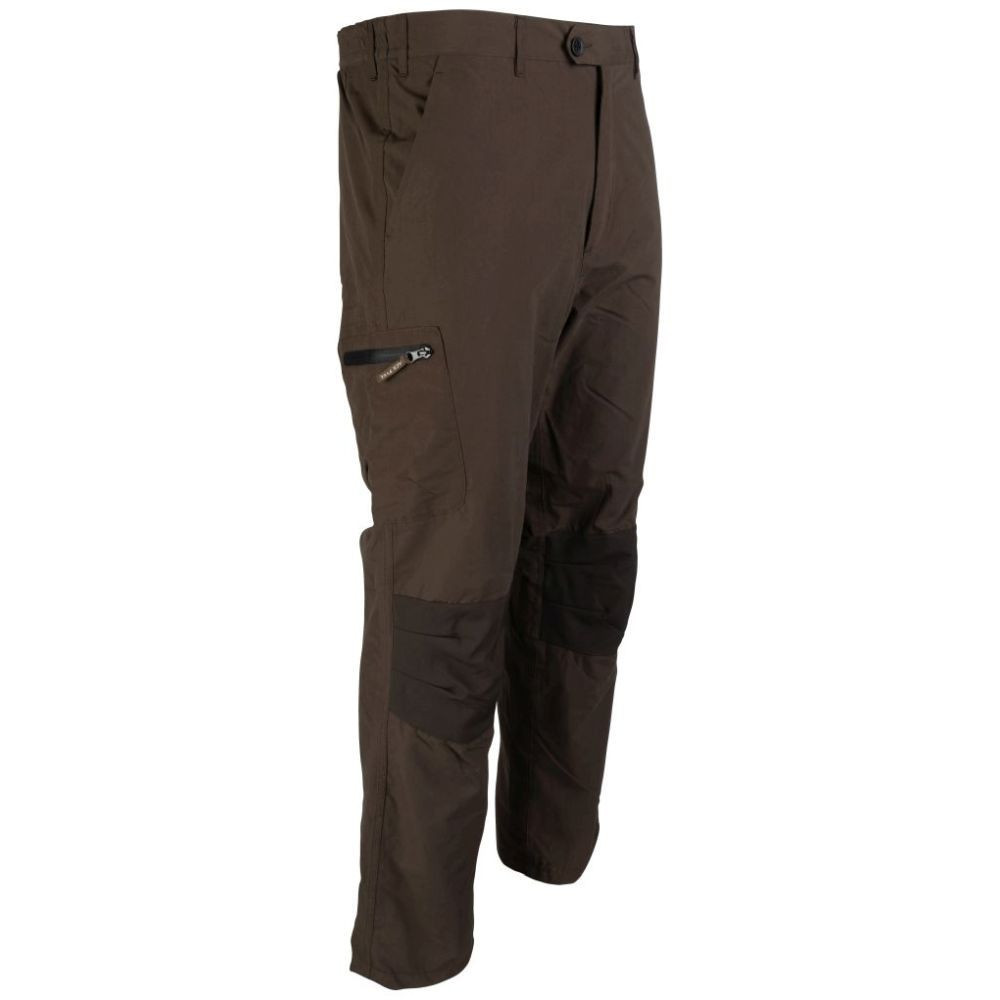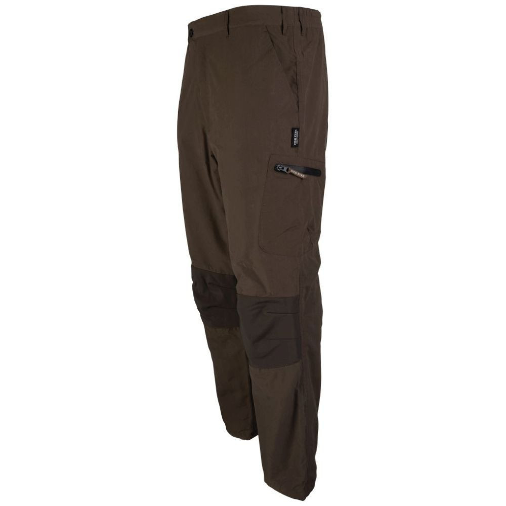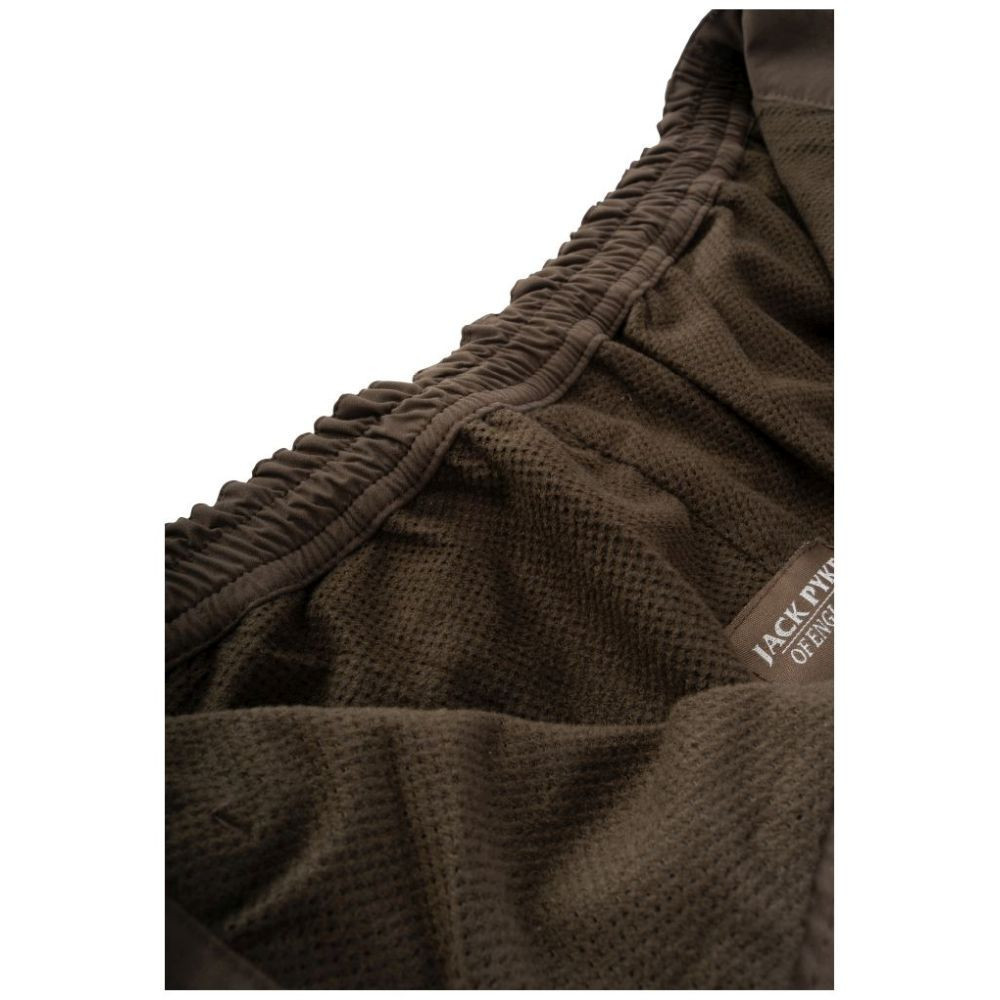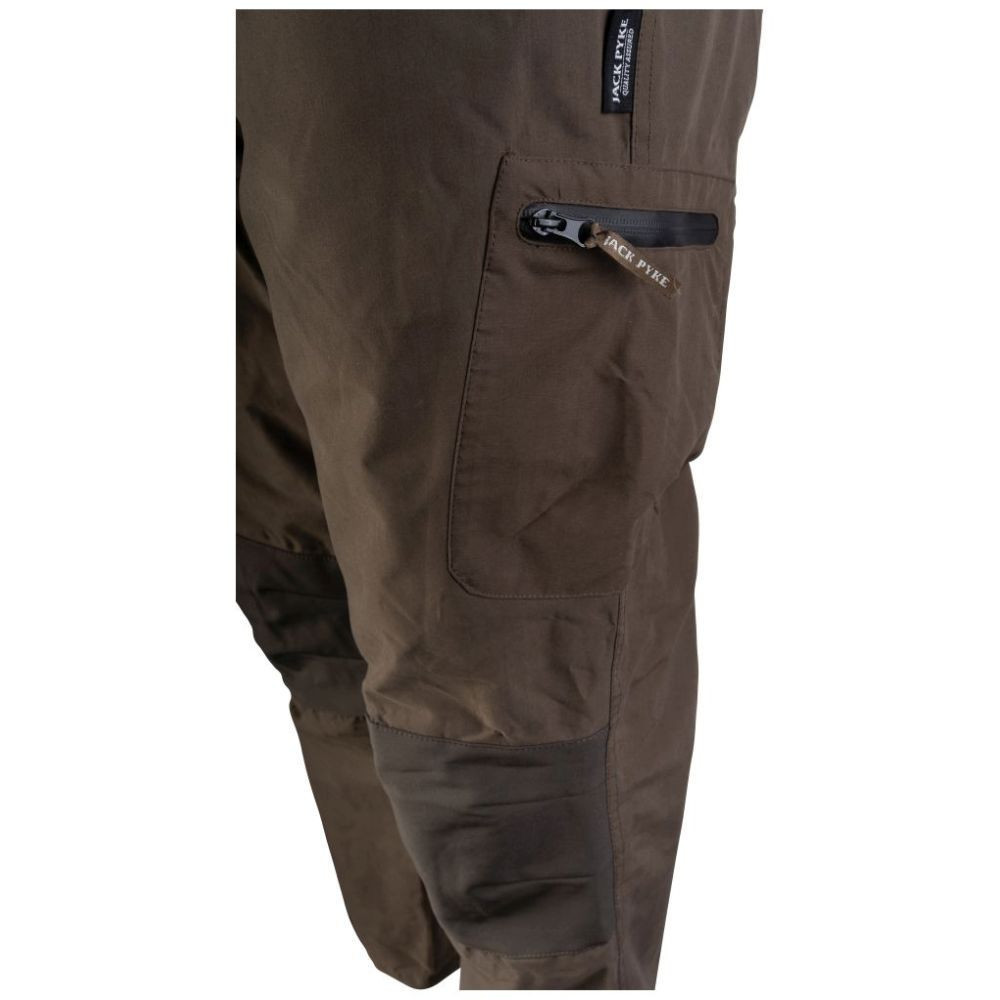 Pantalonii Jack Pyke Weardale sunt fabricați din microfibră de poliester 100% cu finisaj periat și membrană TPU lipită. Aceștia sunt rezistenți, ușori și impermeabili. Căptușeala din plasă permite o bună circulație a aerului, oferind confortul necesar în timpul unei zile lungi petrecute în aer liber. Pantalonii dispun de două buzunare frontale și două buzunare pe picioare, echipate cu fermoare impermeabile pentru stocare suplimentară. Talie elastică asigură o potrivire ușoară, iar genunchii sunt întăriți și preformați pentru un plus de durabilitate.