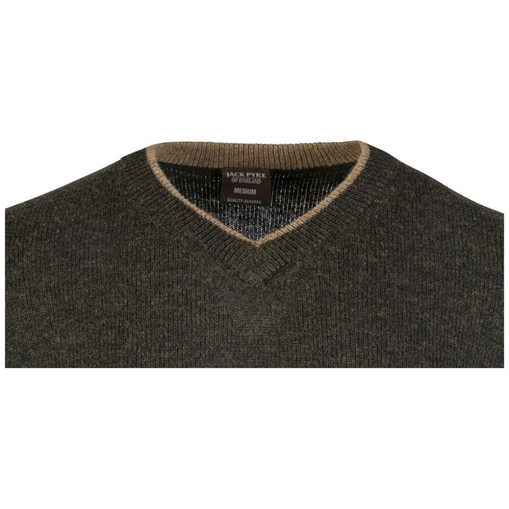 Jack Pyke Ashcombe Pulover 100% lână de miel cu decolteu V, culoare oliv, mărimea S